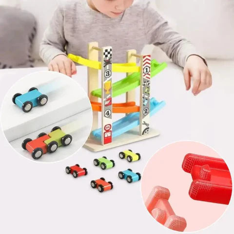 Ce jouet est idéal dès 18 mois. Les enfants adorent observer le mouvement des voitures et commencent très vite à les manipuler eux-mêmes. C’est parfait pour développer la coordination et la curiosité dès le plus jeune âge.